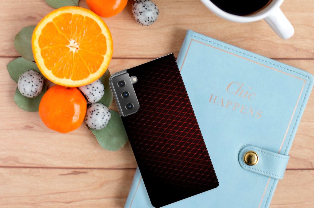 Samsung Galaxy S21 Plus Hoesje met Magneet Geruit Rood