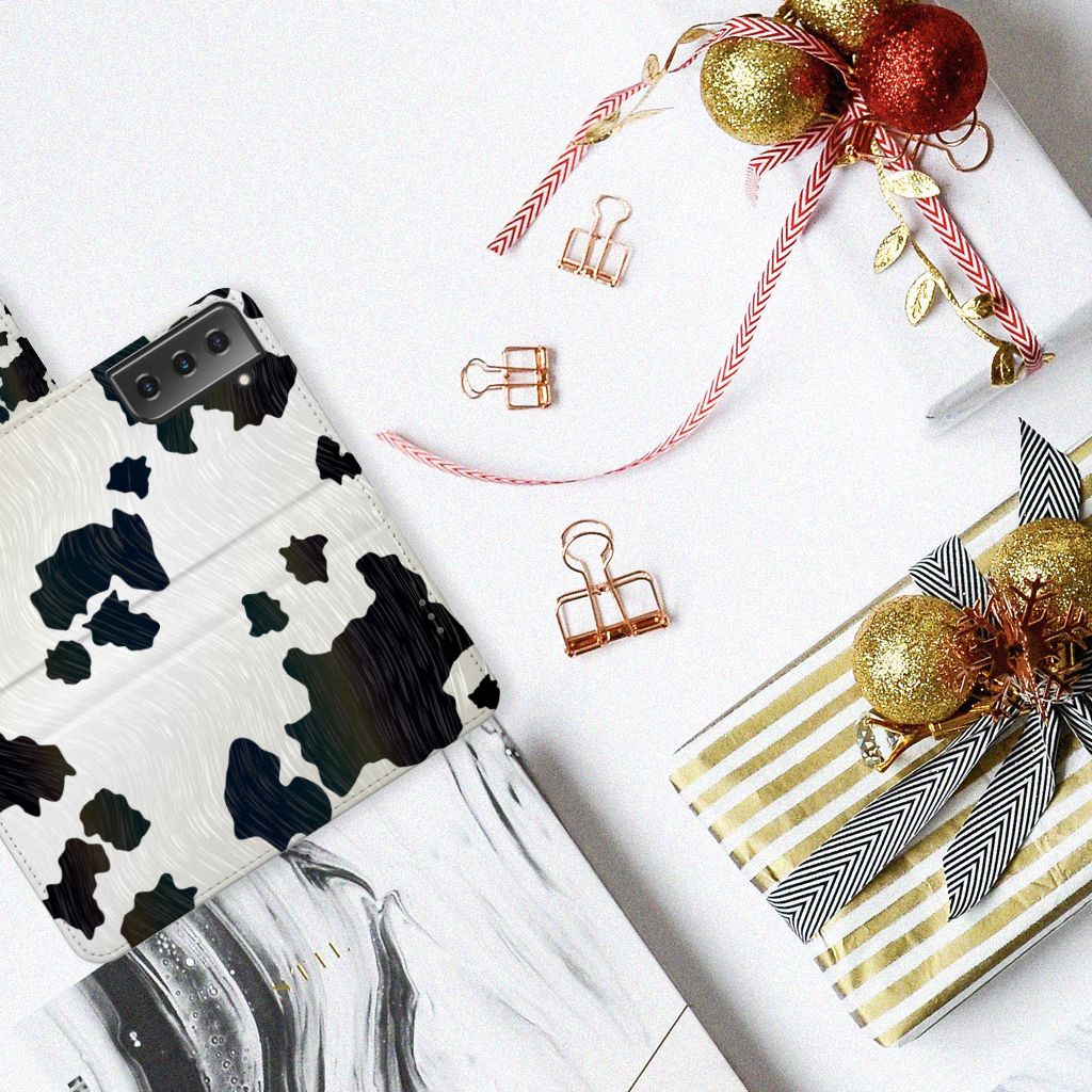 Samsung Galaxy S21 Plus Telefoonhoesje met Pasjes Koeienvlekken