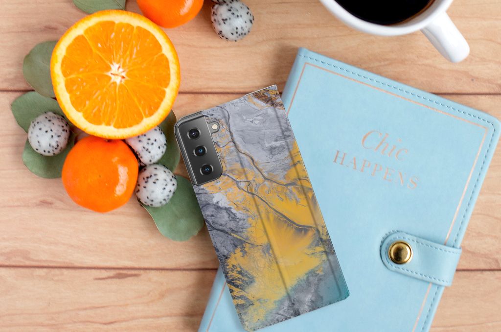 Samsung Galaxy S21 Plus Standcase Marble Blue Gold
