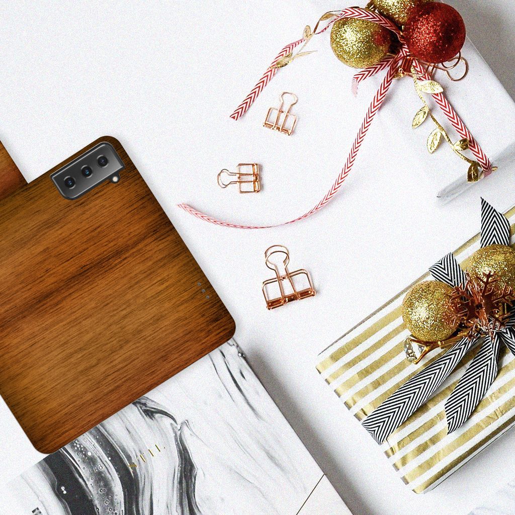 Samsung Galaxy S21 Plus Book Style Case Donker Hout
