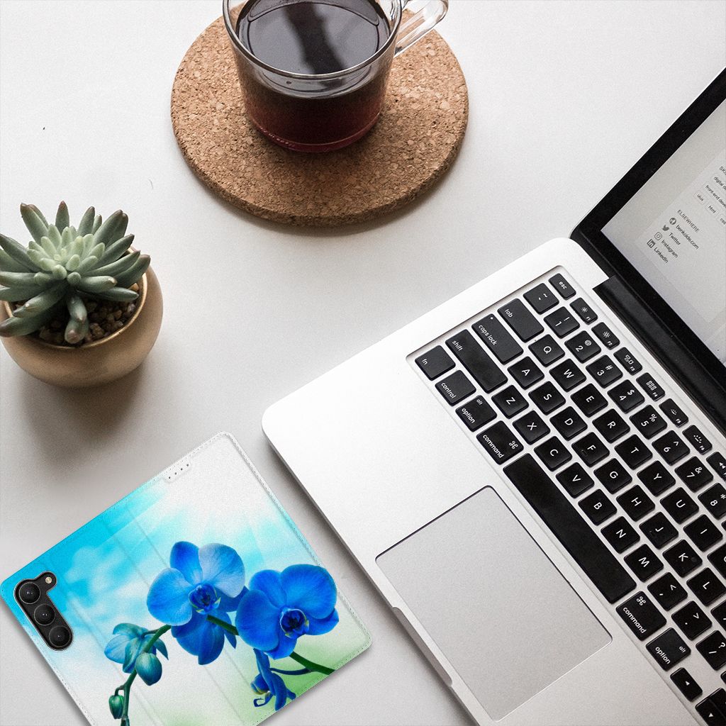Samsung Galaxy S23 Plus Smart Cover Orchidee Blauw - Cadeau voor je Moeder