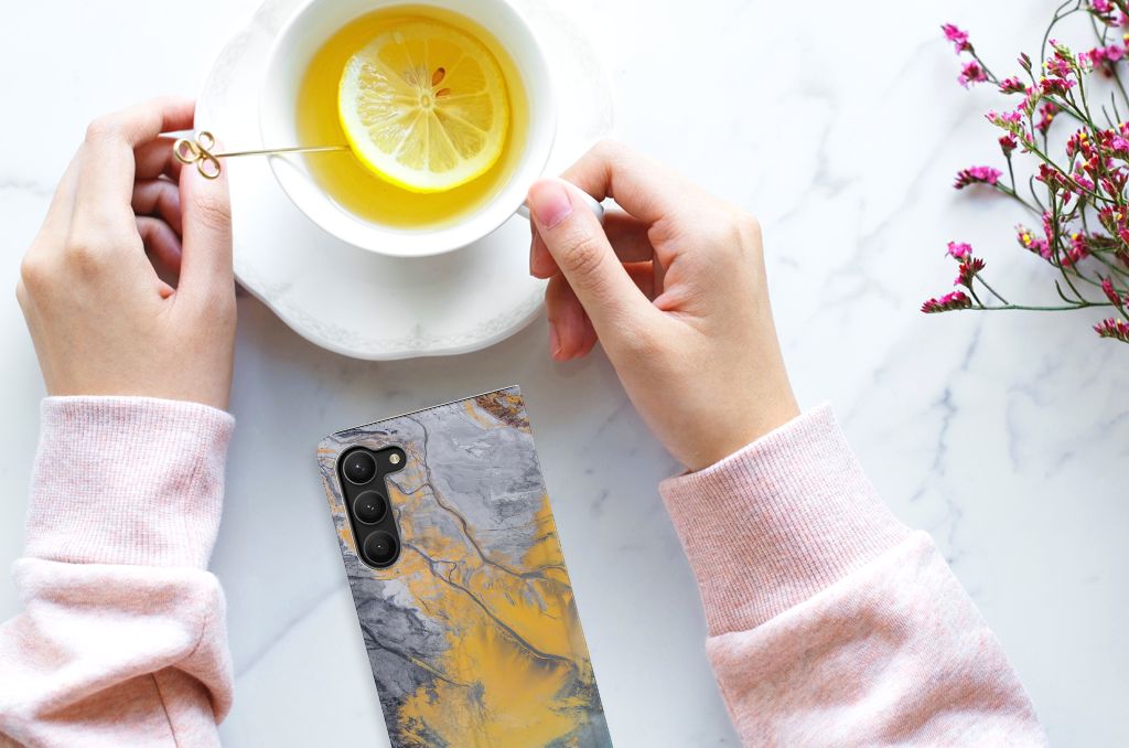 Samsung Galaxy S23 Plus Smart Cover Gouden Bloemen