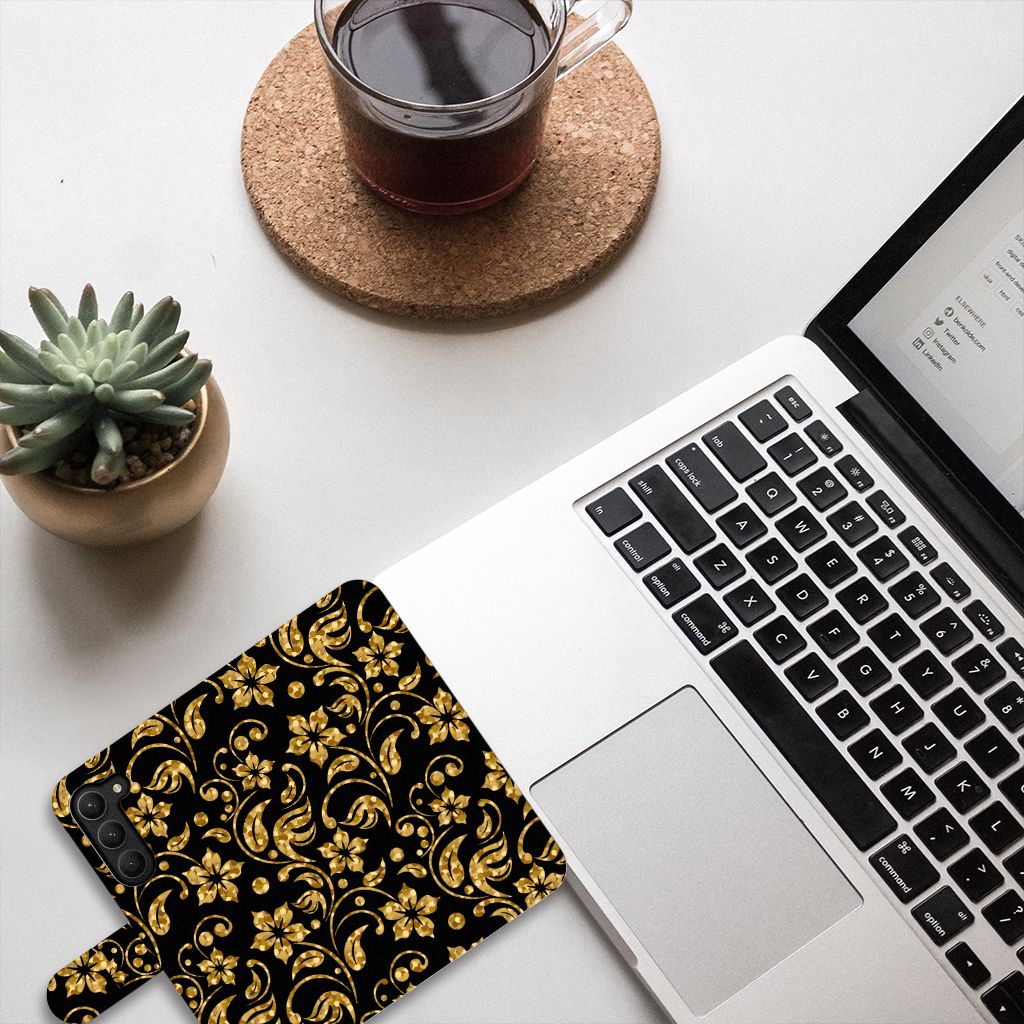 Samsung Galaxy S23 Plus Hoesje Gouden Bloemen