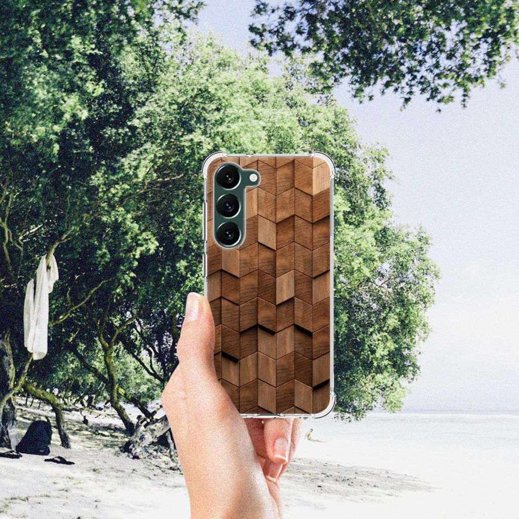 Stevig Telefoonhoesje voor Samsung Galaxy S23 Plus Wooden Cubes