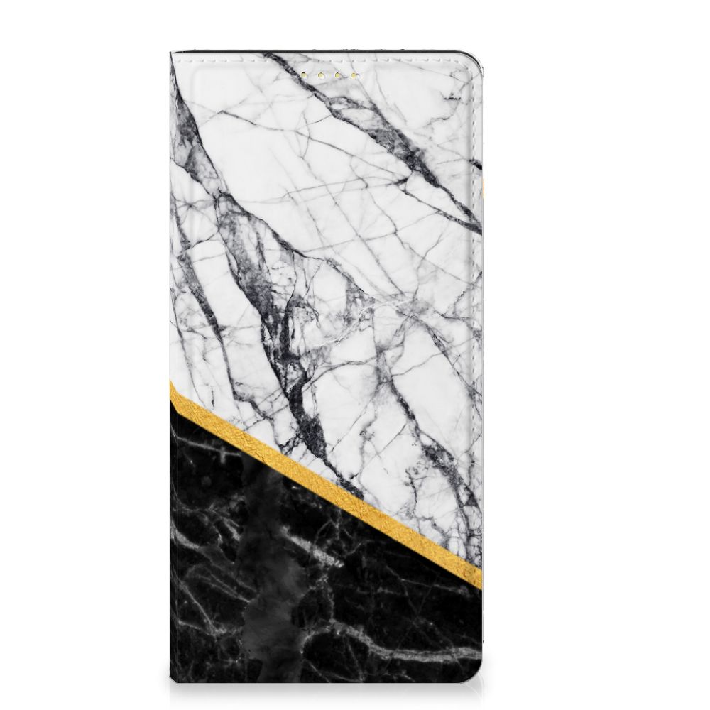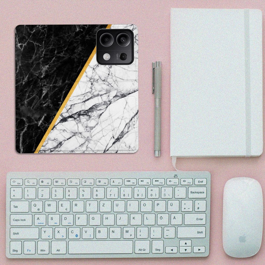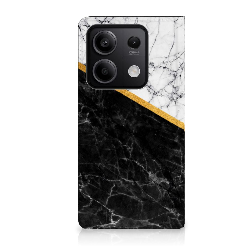 Xiaomi Redmi Note 13 5G Standcase Marmer Wit Zwart - Origineel Cadeau Man