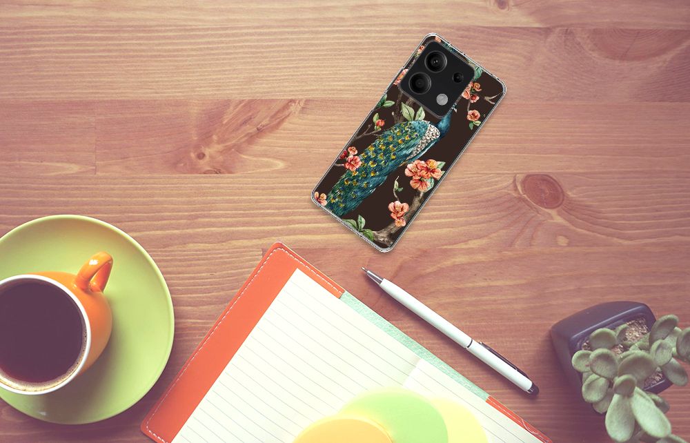 Xiaomi Redmi Note 13 5G TPU Hoesje Pauw met Bloemen