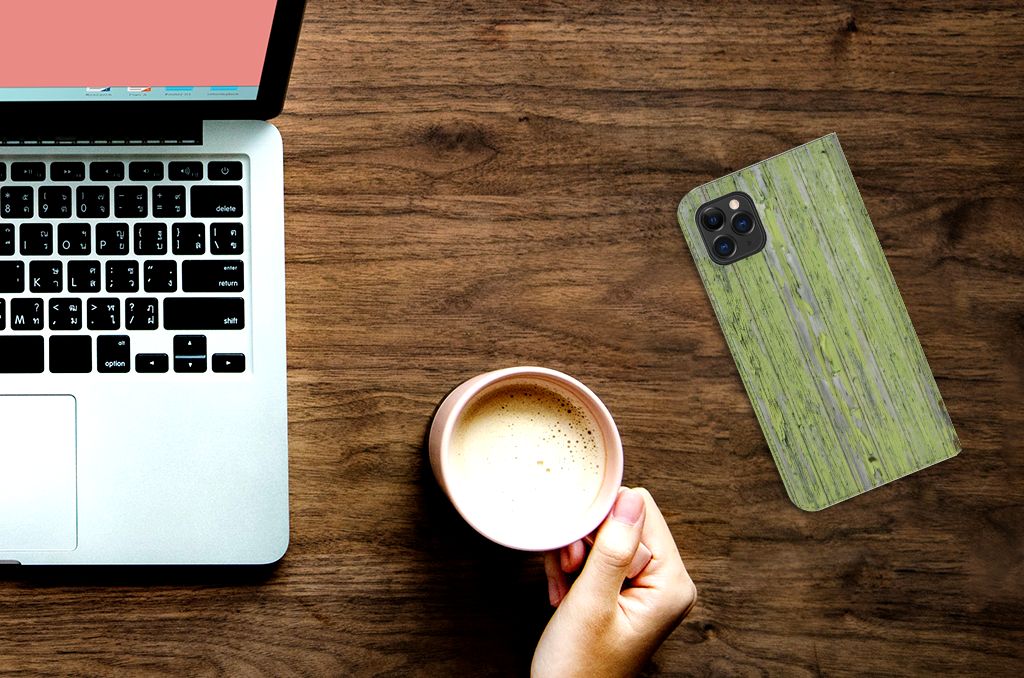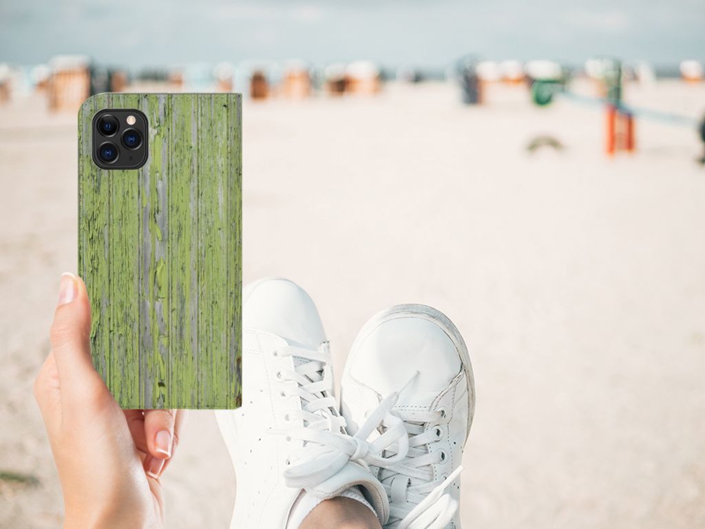 Apple iPhone 11 Pro Max Book Wallet Case Green Wood