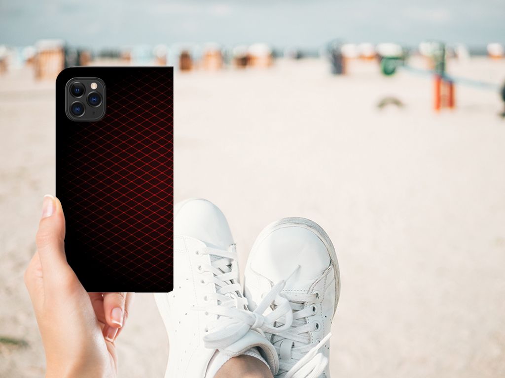 Apple iPhone 11 Pro Max Hoesje met Magneet Geruit Rood