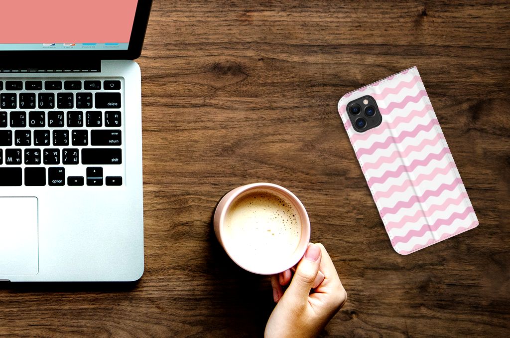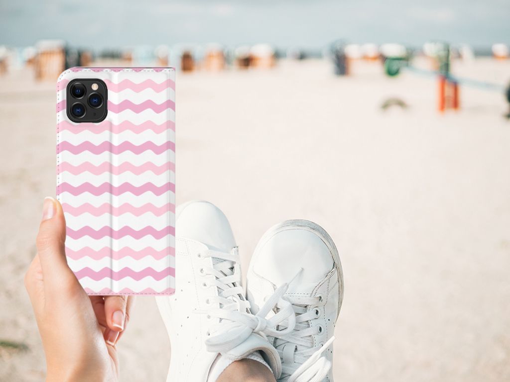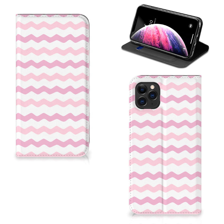 Apple iPhone 11 Pro Max Hoesje met Magneet Waves Roze