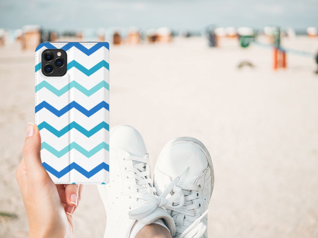 Apple iPhone 11 Pro Max Hoesje met Magneet Zigzag Blauw