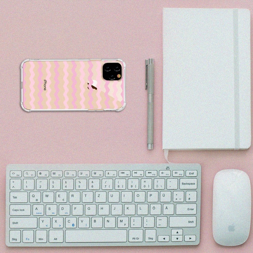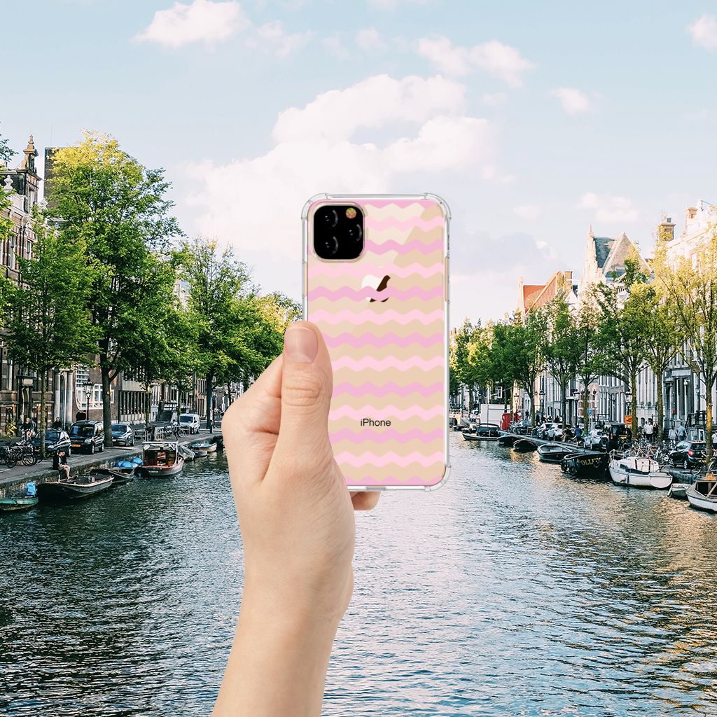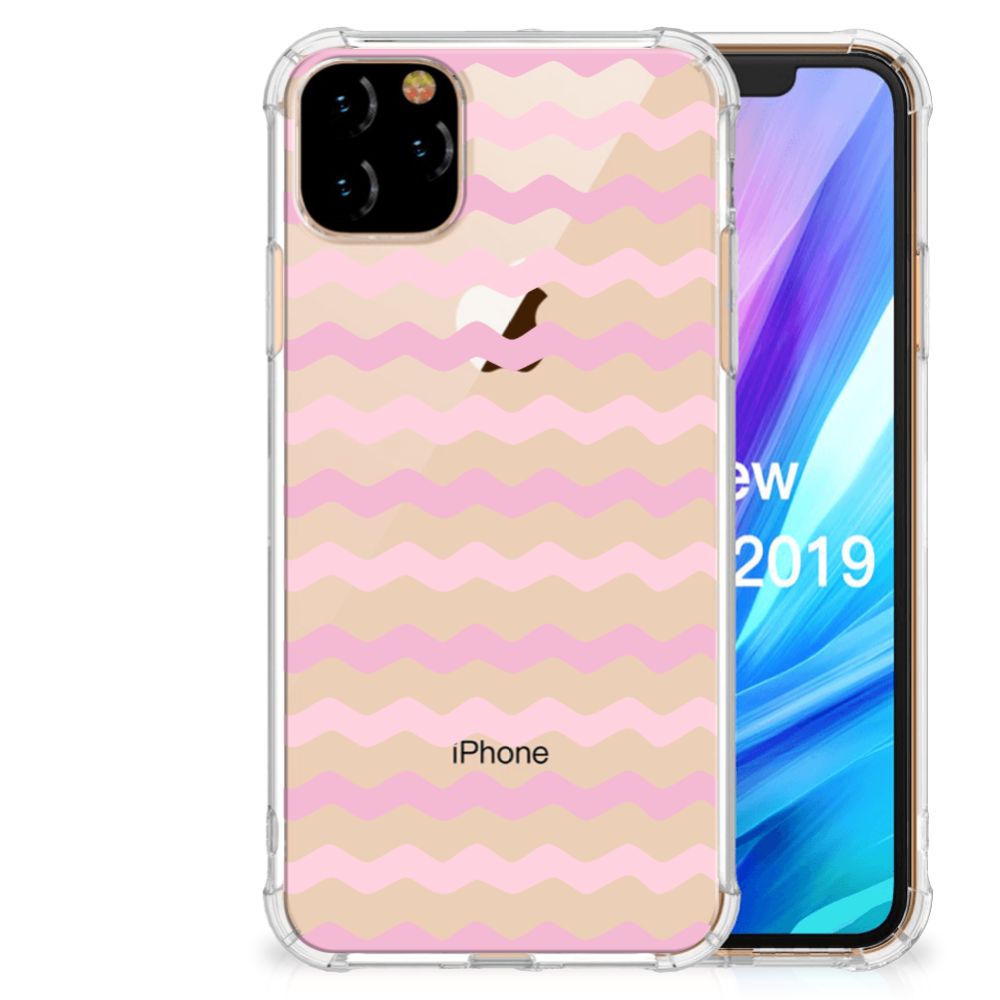Apple iPhone 11 Pro Max Doorzichtige Silicone Hoesje Waves Roze