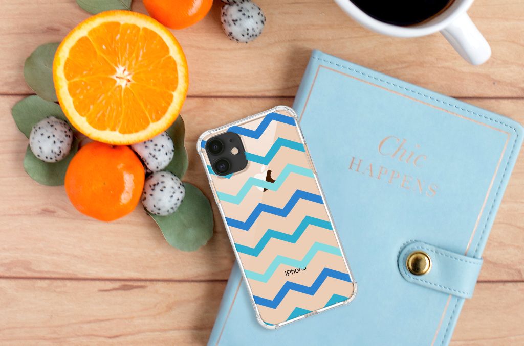 Apple iPhone 11 Doorzichtige Silicone Hoesje Zigzag Blauw