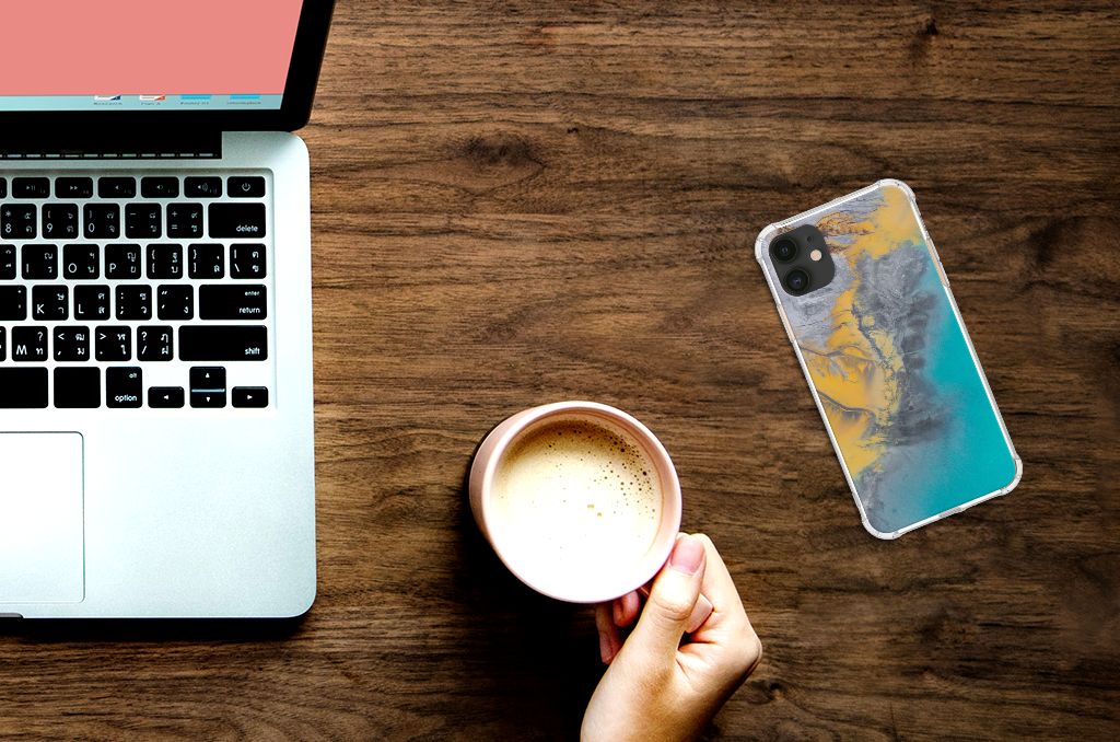 Apple iPhone 11 Anti-Shock Hoesje Marble Blue Gold