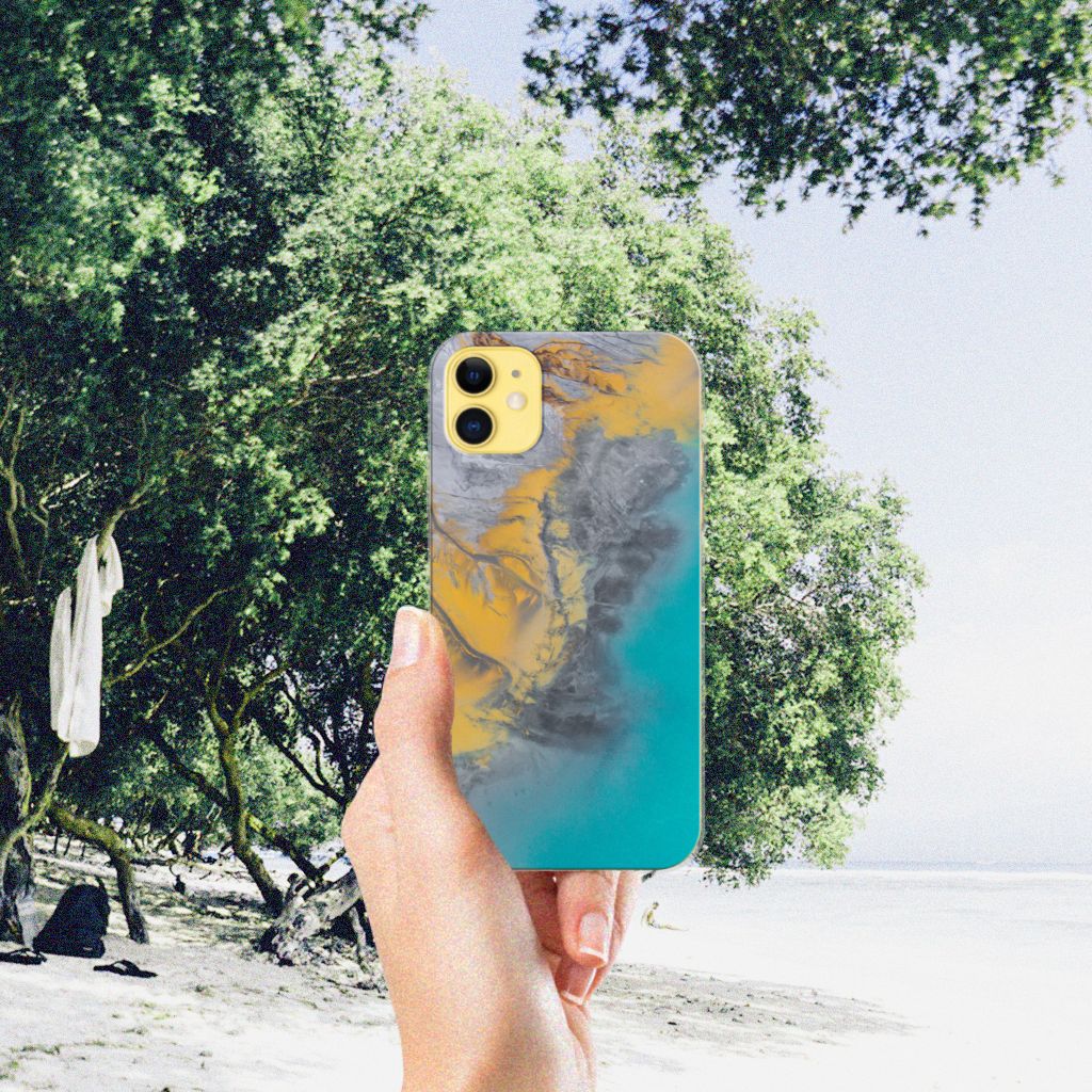 Apple iPhone 11 TPU Siliconen Hoesje Marble Blue Gold