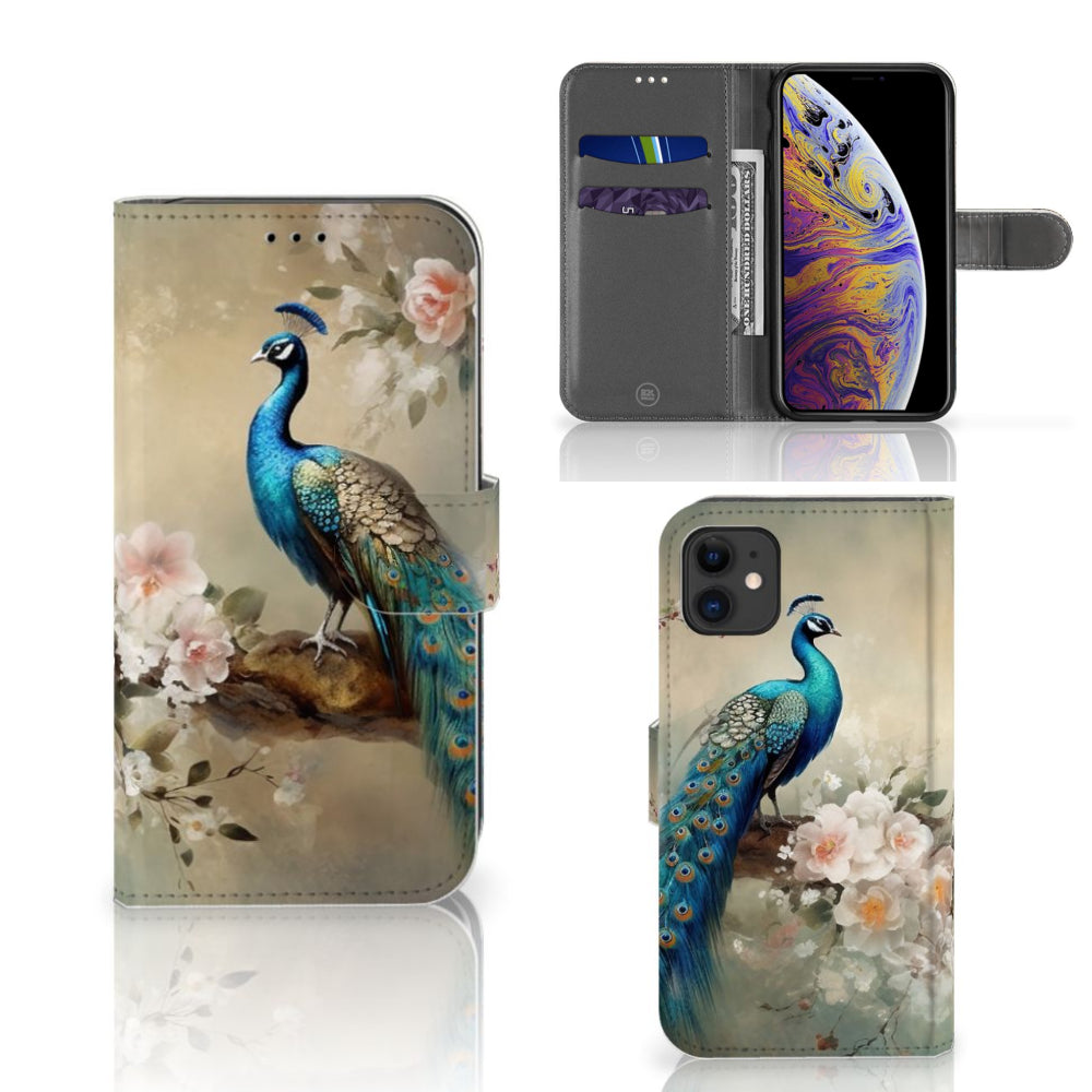 Telefoonhoesje met Pasjes voor Apple iPhone 11 Vintage Pauwen