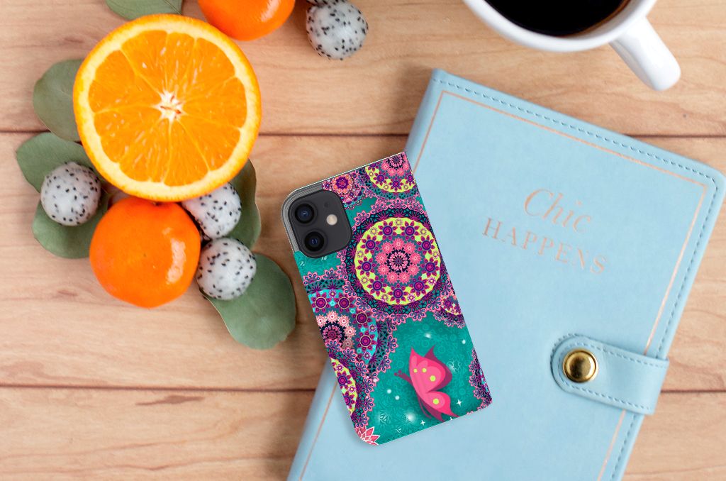 iPhone 12 Mini Bookcase Cirkels en Vlinders