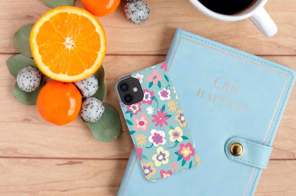 Apple iPhone 12 Mini Hoesje Gouden Bloemen
