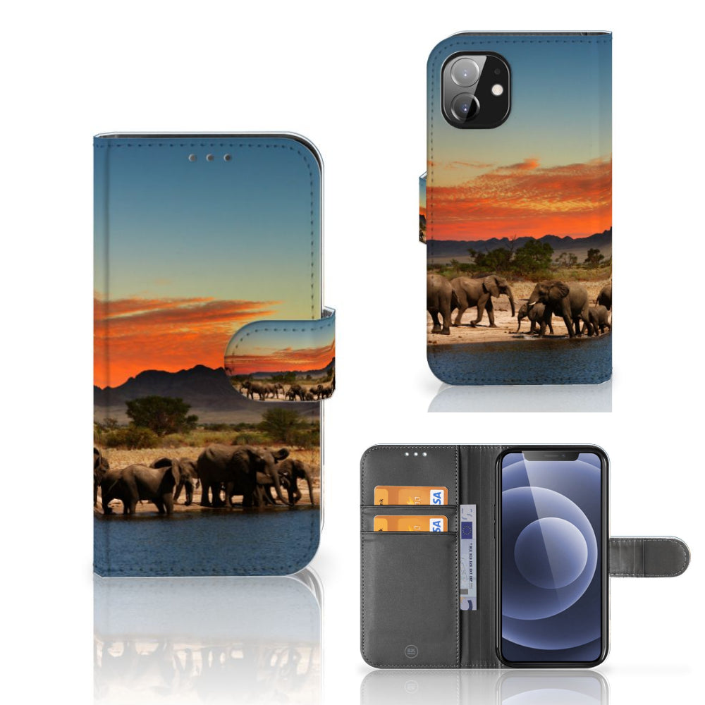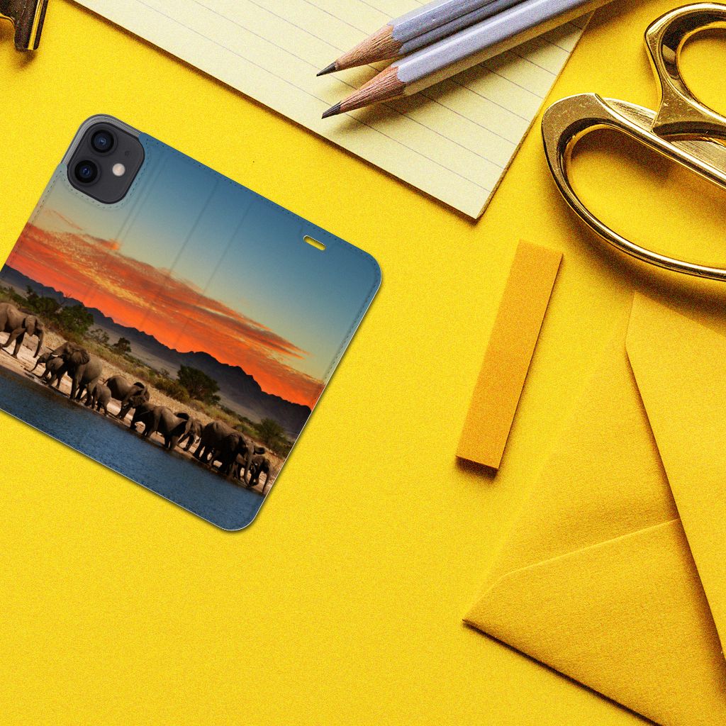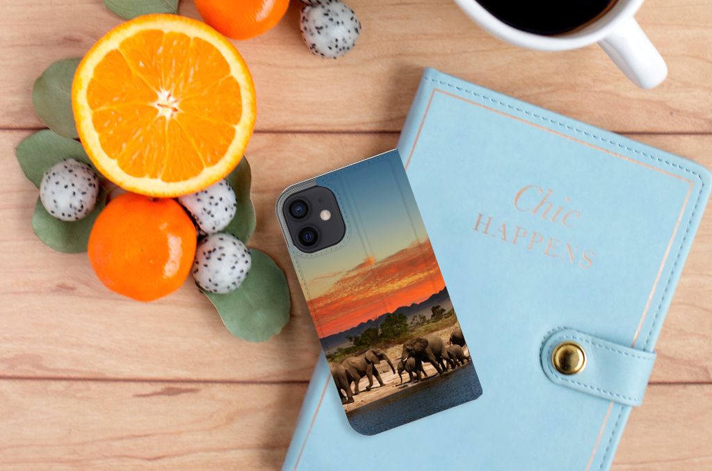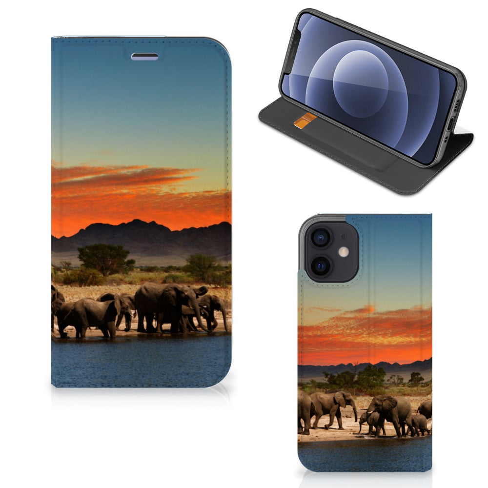 Apple iPhone 12 Mini Telefoonhoesje met Pasjes Olifanten