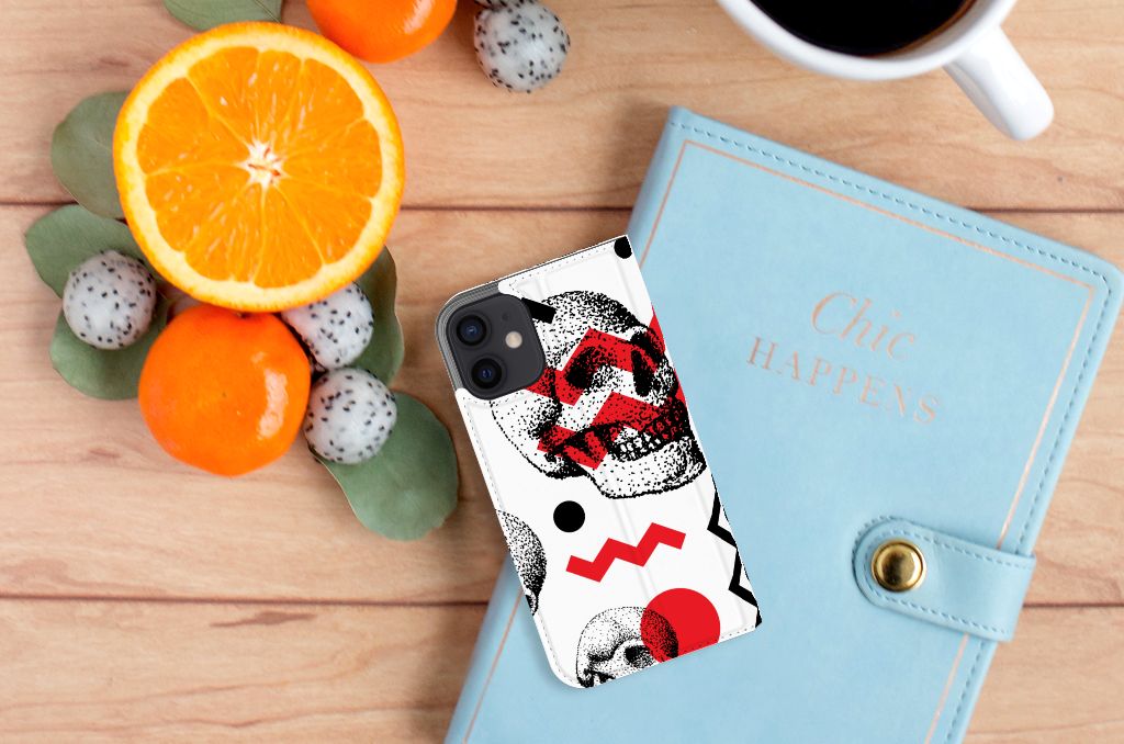 Mobiel BookCase iPhone 12 Mini Skull Red