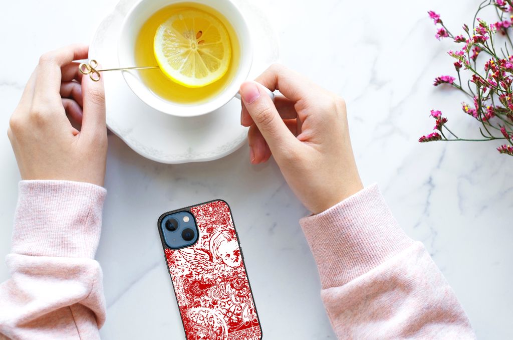 Telefoonhoesje Apple iPhone 13 mini Angel Skull Rood