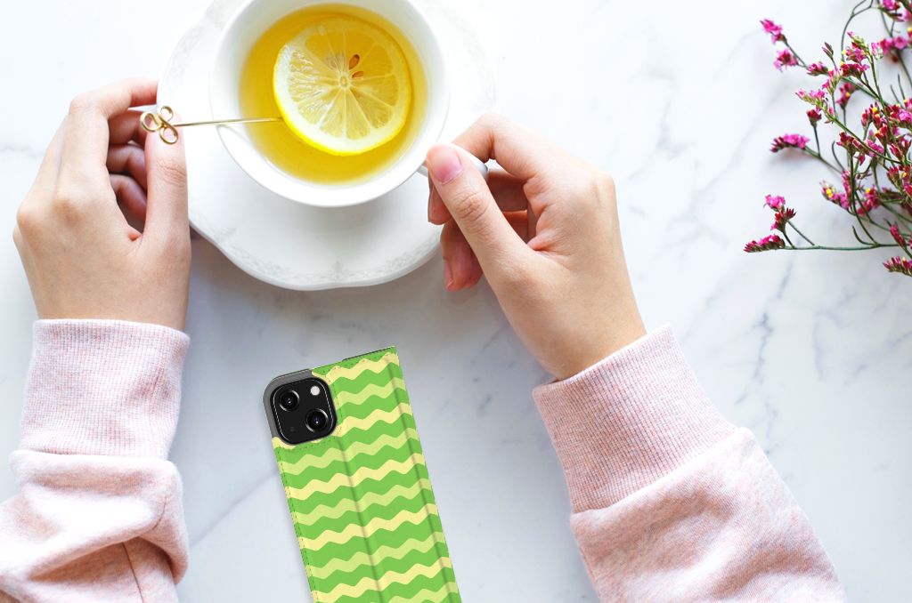 iPhone 13 Mini Hoesje met Magneet Waves Green