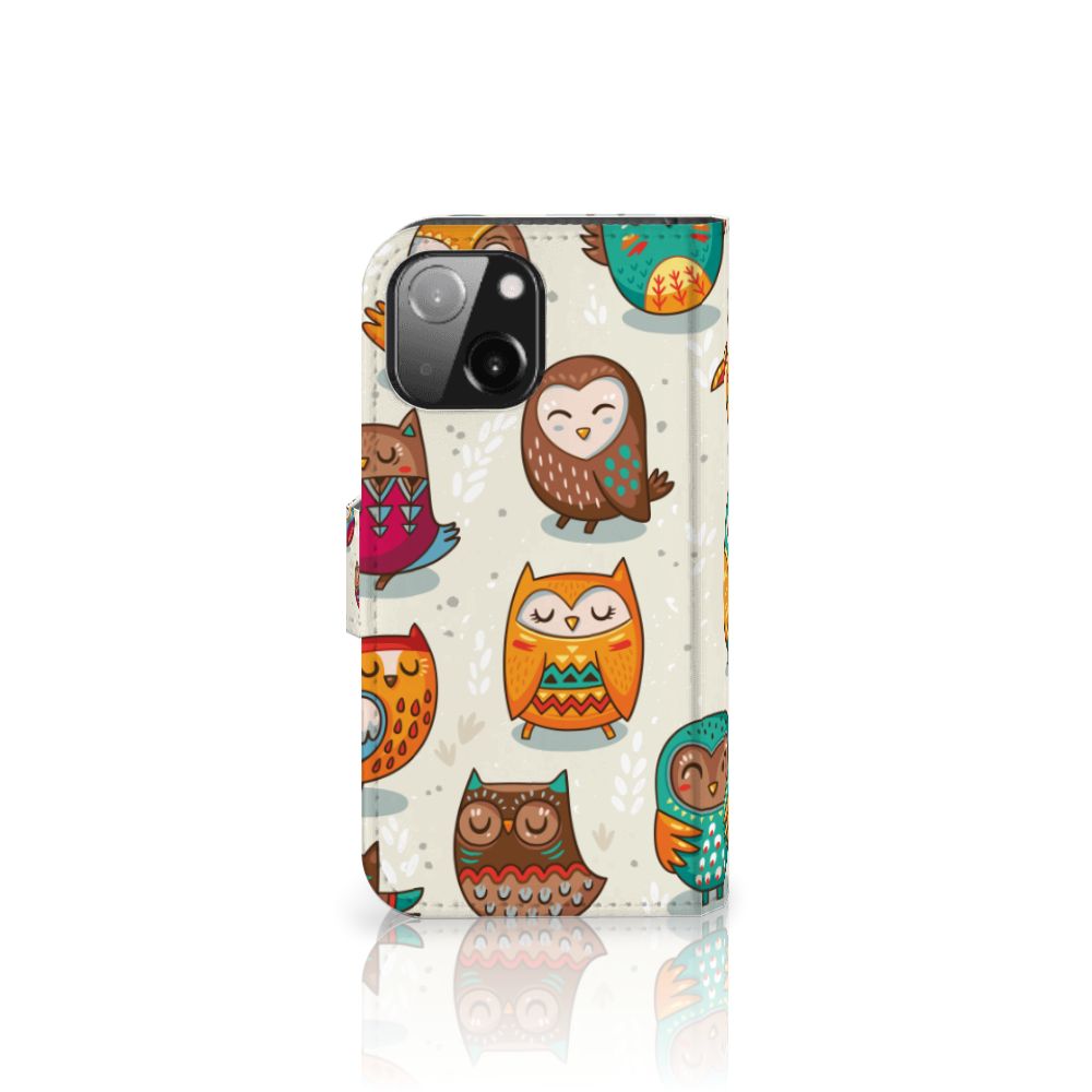 iPhone 13 Mini Telefoonhoesje met Pasjes Vrolijke Uilen