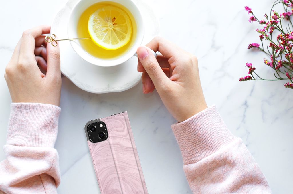 iPhone 13 Mini Standcase Marble Pink - Origineel Cadeau Vriendin