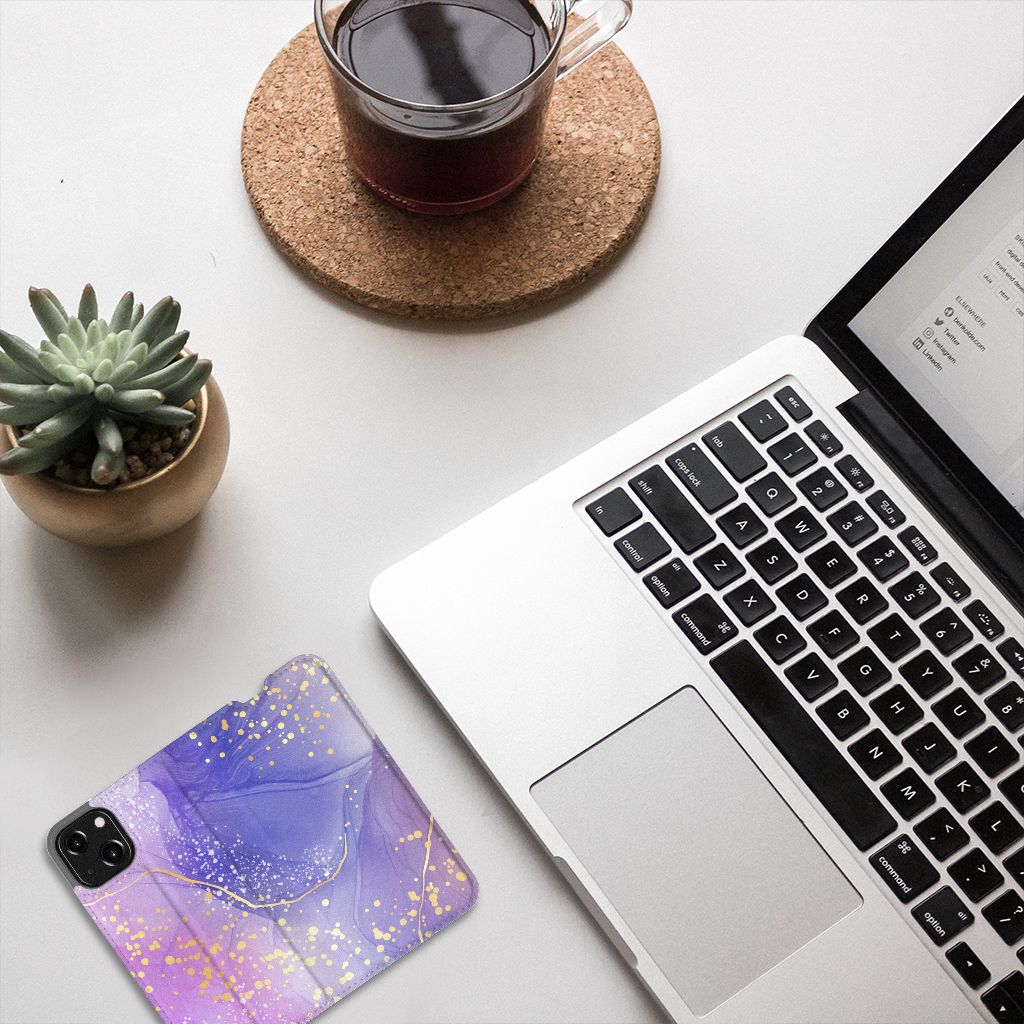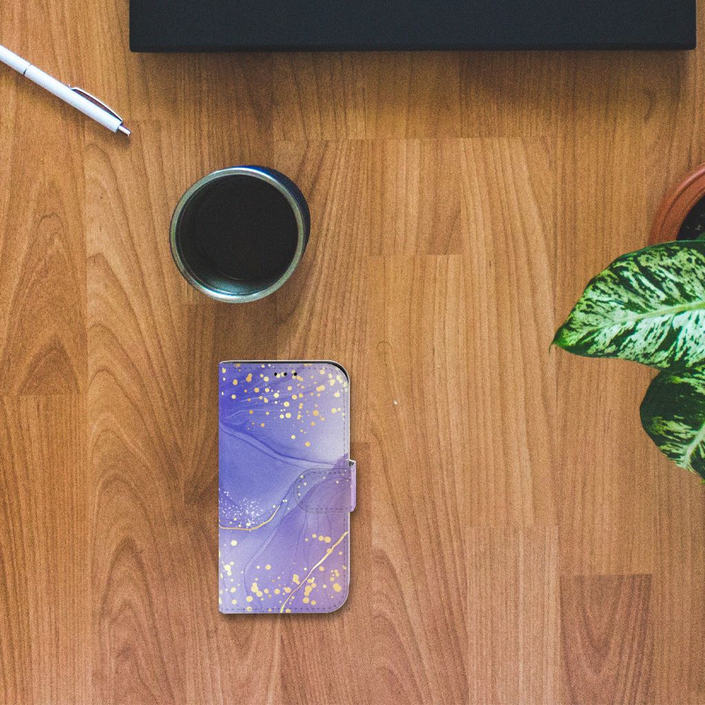 Bookcase voor iPhone 13 Mini Watercolor Paars