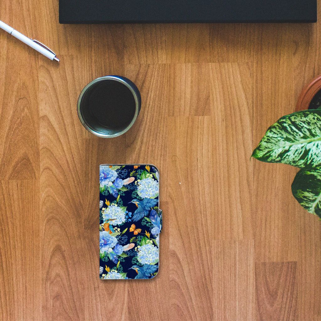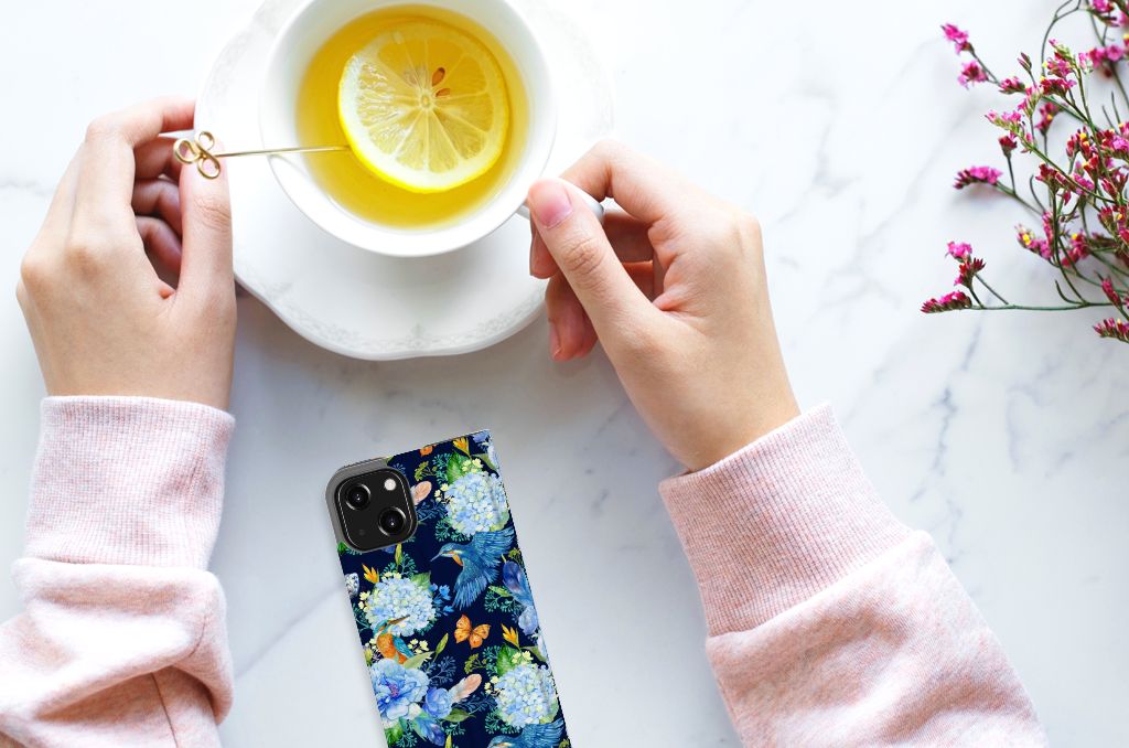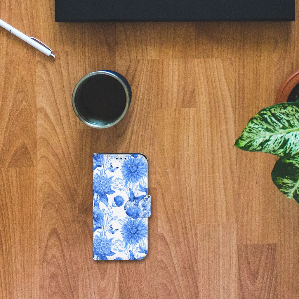 Bloemen Hoesje voor Apple iPhone 13 mini Flowers Blue