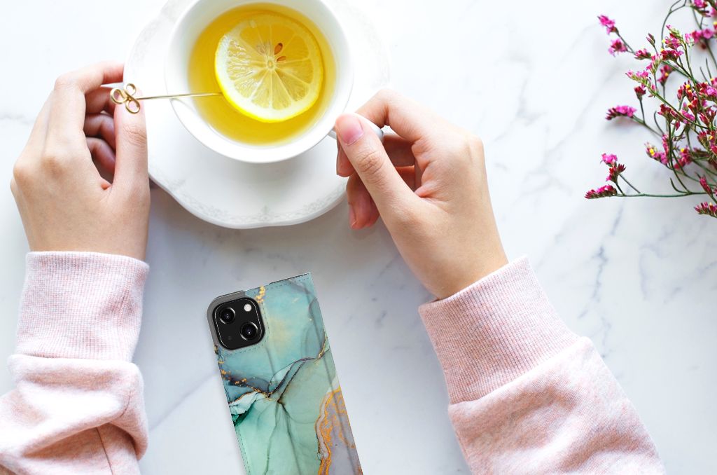 iPhone 13 Mini Bookcase Marmer Zwart - Origineel Cadeau Vader