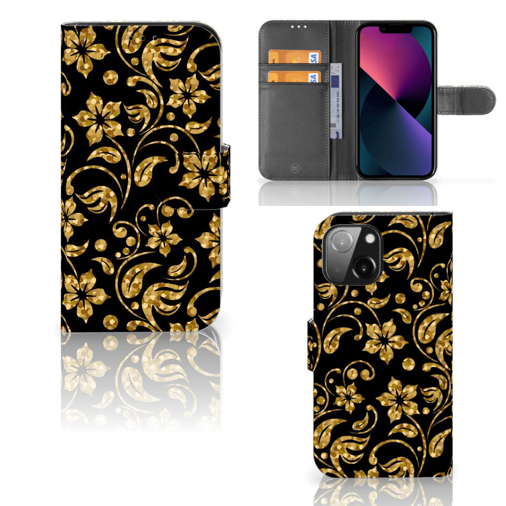 iPhone 13 Mini Hoesje Gouden Bloemen