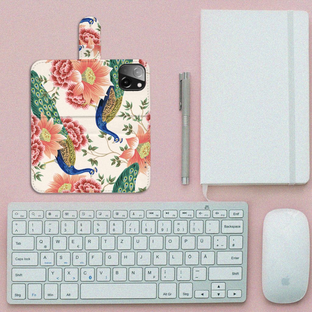 Telefoonhoesje met Pasjes voor iPhone 13 Mini Pink Peacock