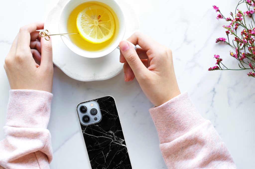 Apple iPhone 13 Pro TPU Siliconen Hoesje Marmer Zwart - Origineel Cadeau Vader