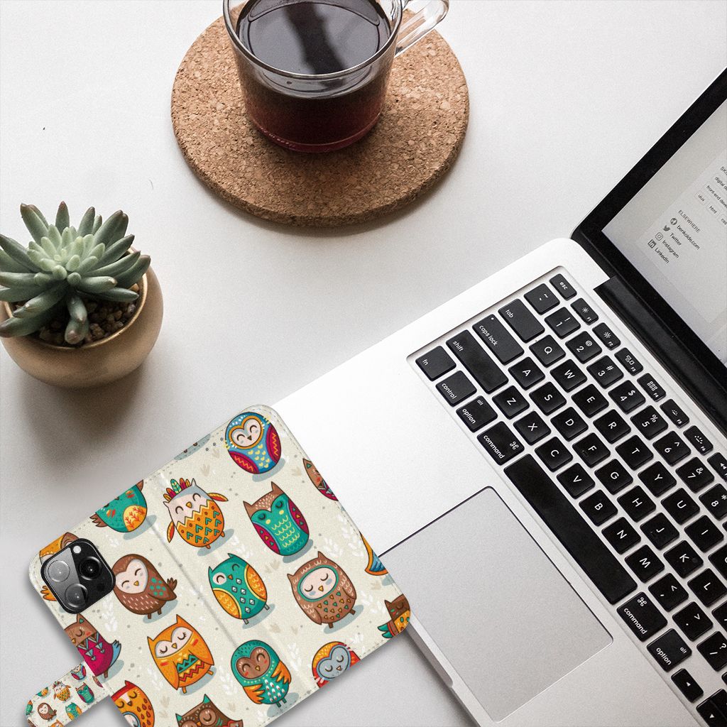 iPhone 13 Pro Max Telefoonhoesje met Pasjes Vrolijke Uilen