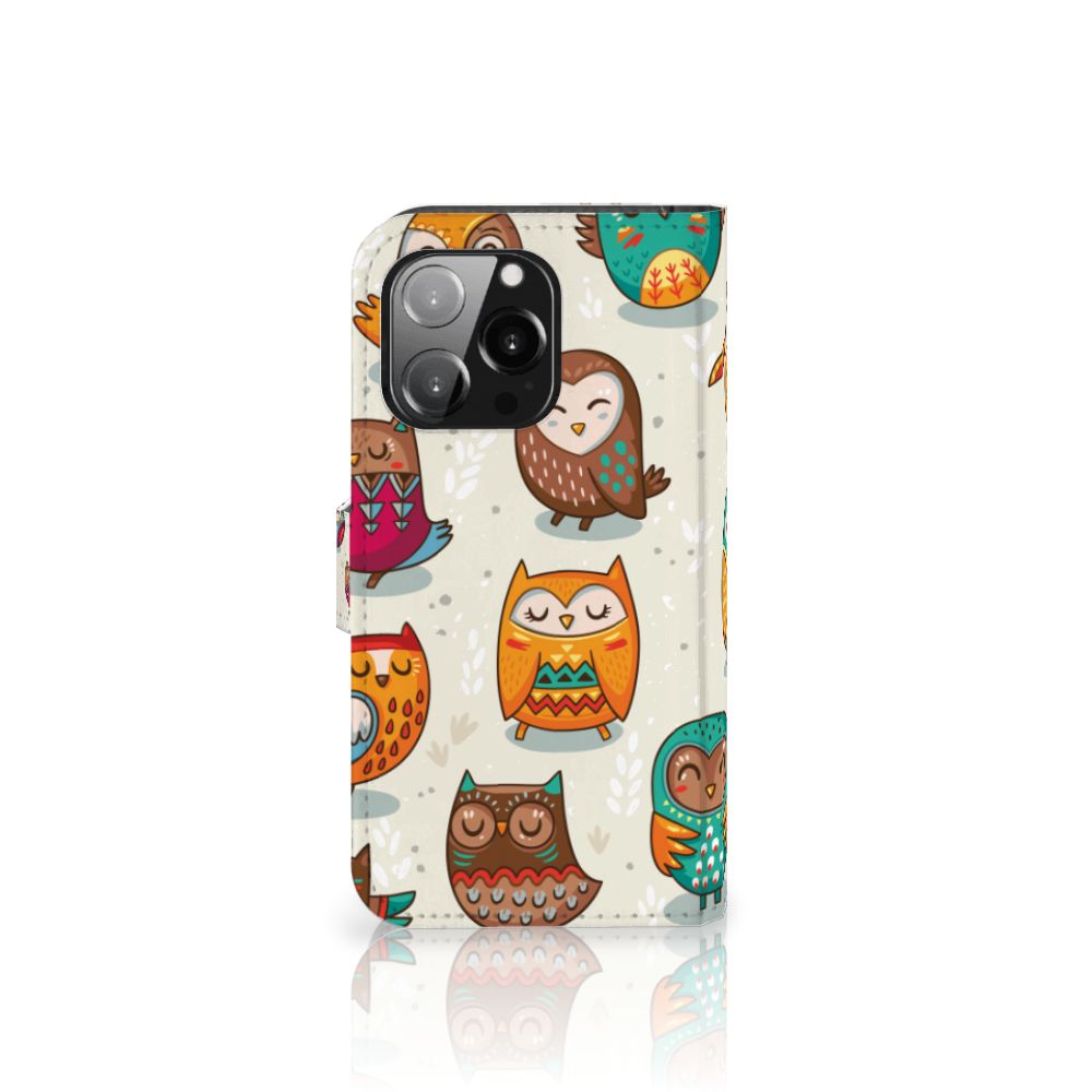 iPhone 13 Pro Telefoonhoesje met Pasjes Vrolijke Uilen