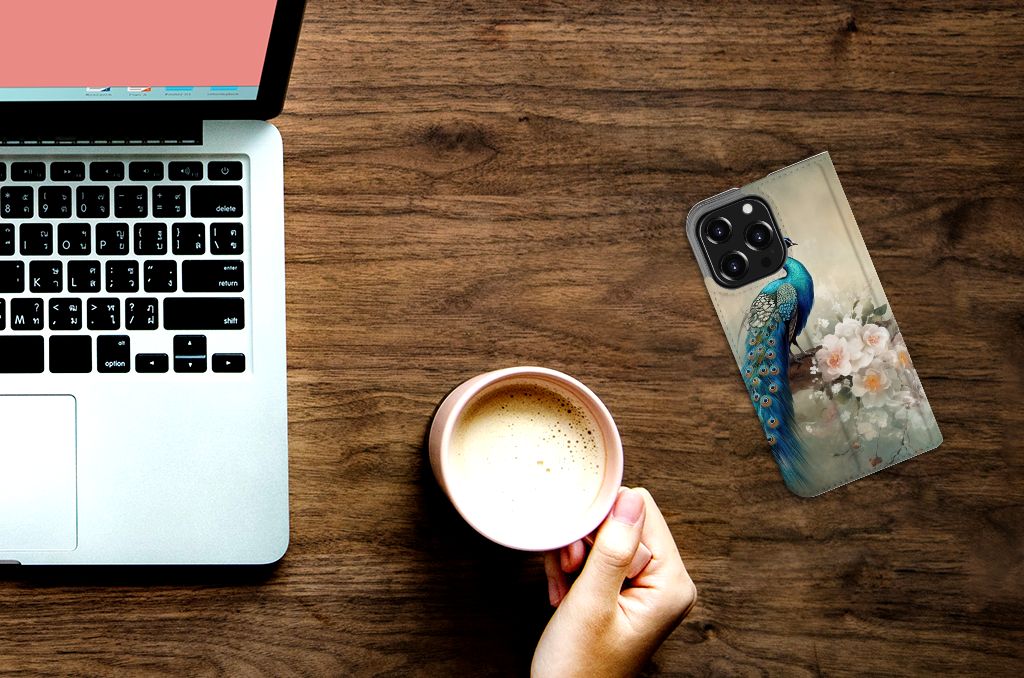 iPhone 13 Pro Hoesje maken Pauw met Bloemen