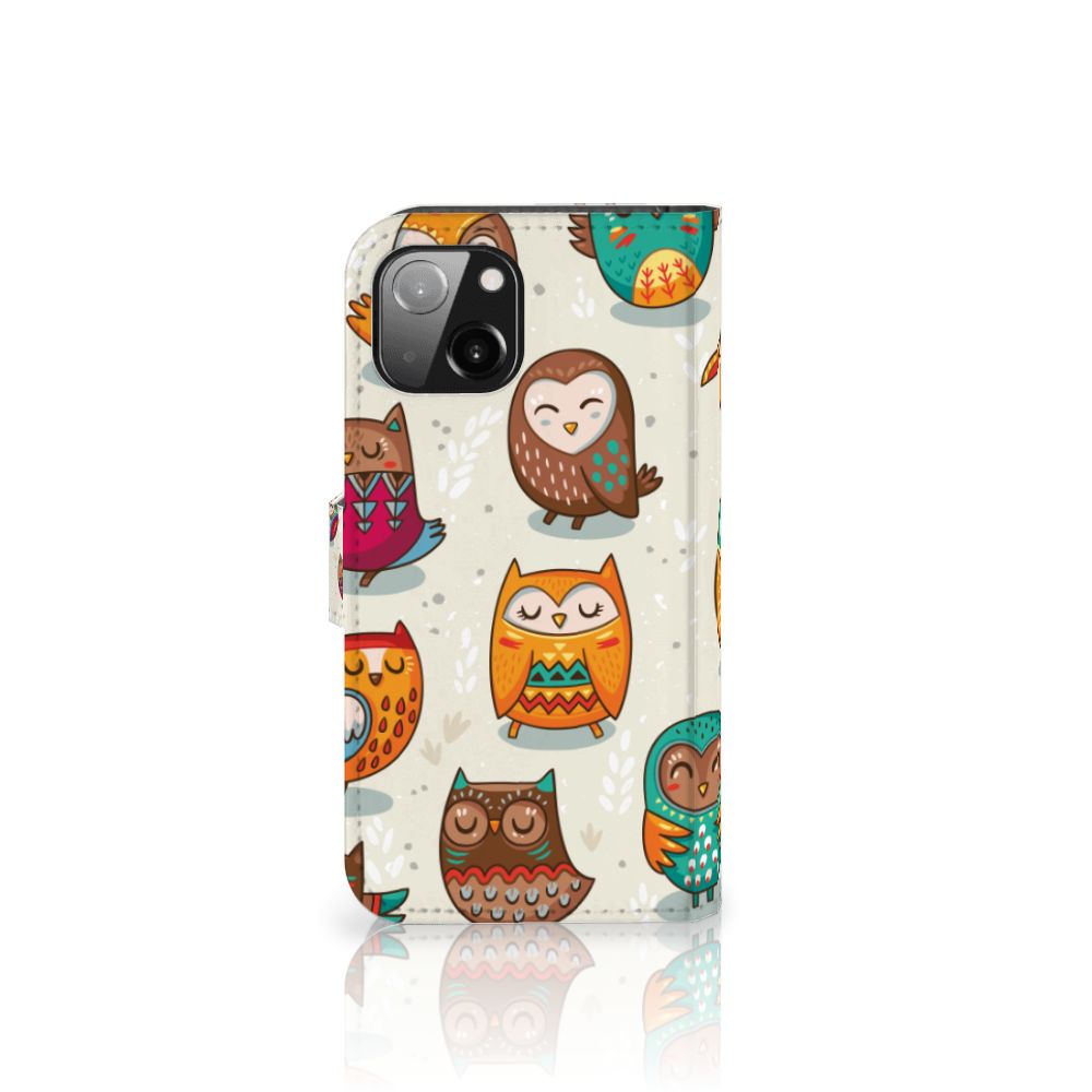 Apple iPhone 13 Telefoonhoesje met Pasjes Vrolijke Uilen