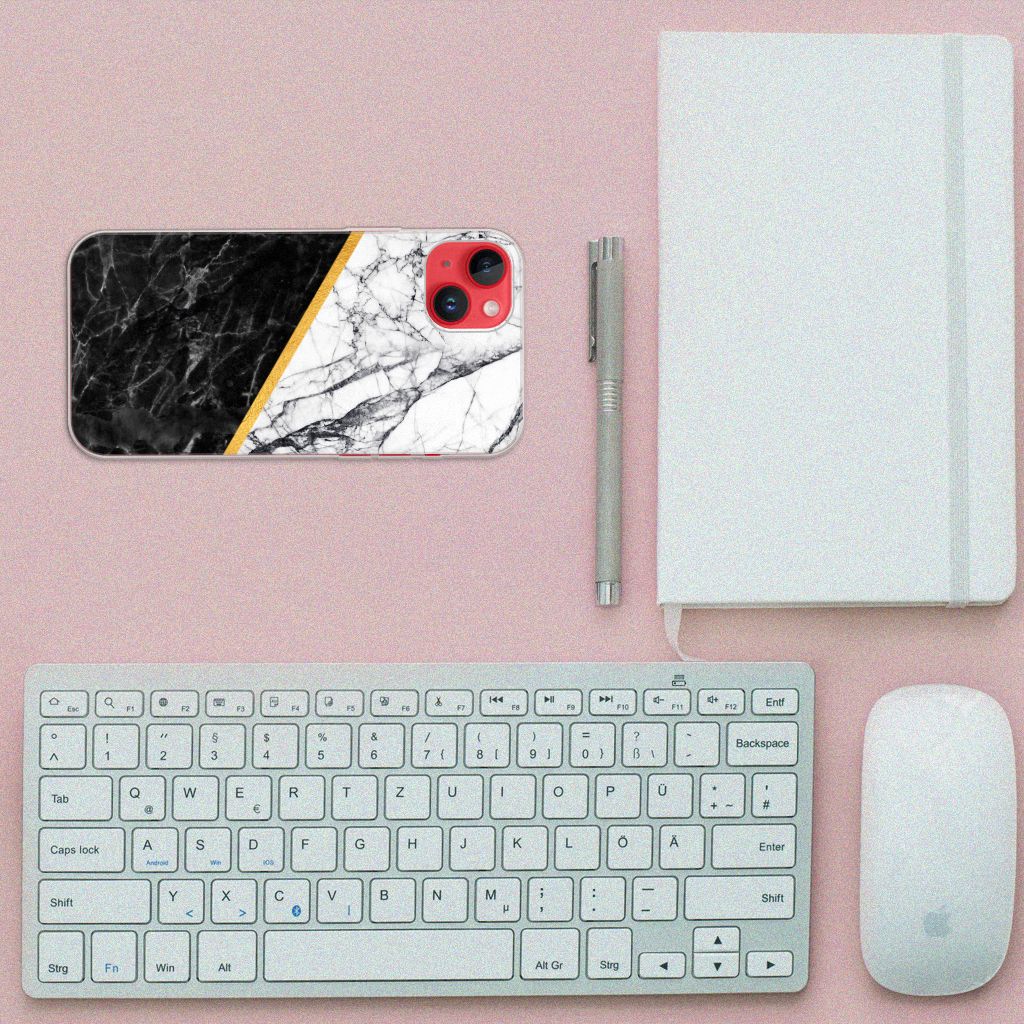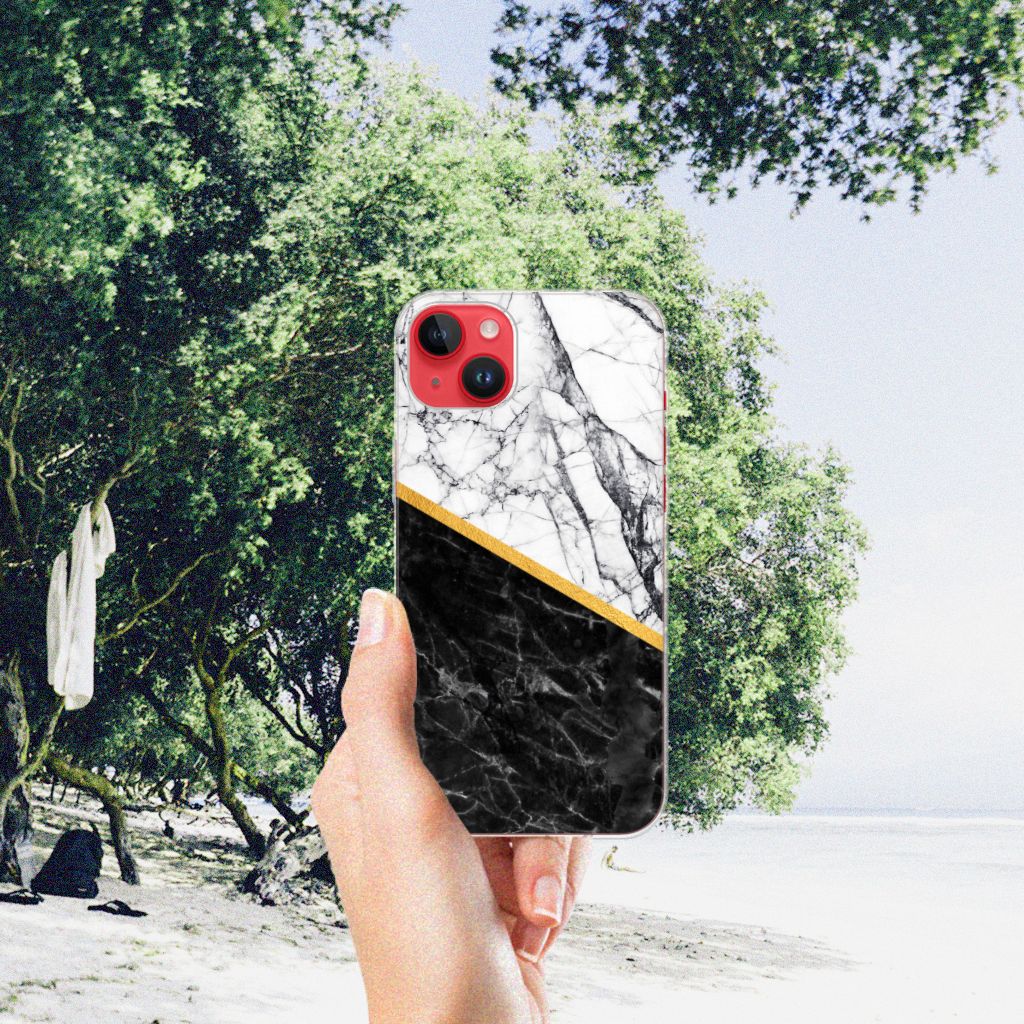 iPhone 14 Plus TPU Siliconen Hoesje Marmer Wit Zwart - Origineel Cadeau Man