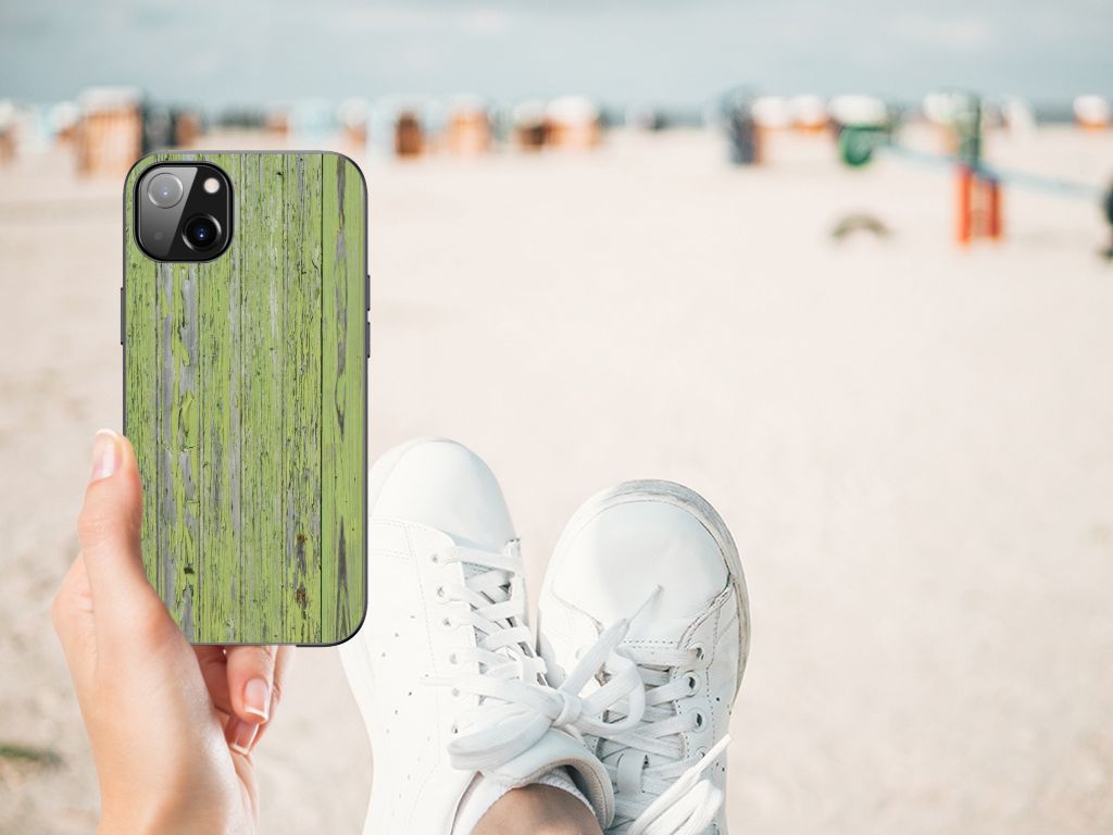 iPhone 14 Plus Houten Print Telefoonhoesje Green Wood