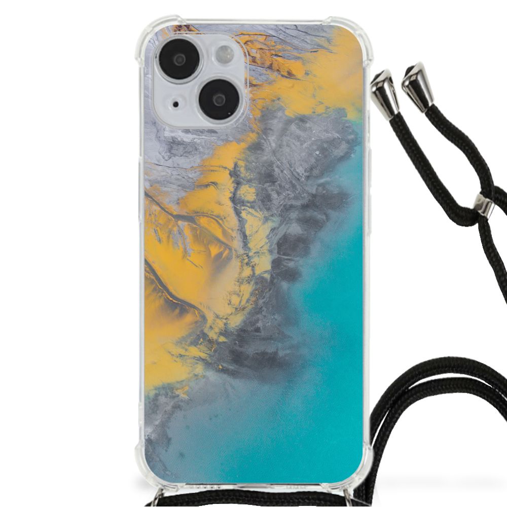iPhone 14 Plus Anti-Shock Hoesje Marble Blue Gold