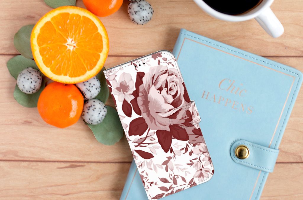 iPhone 14 Plus Telefoonhoesje met Pasjes Pauw met Bloemen