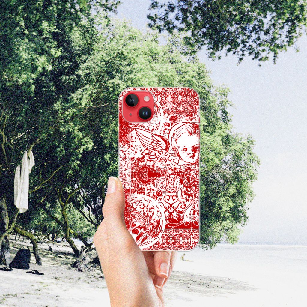 Silicone Back Case iPhone 14 Plus Angel Skull Rood