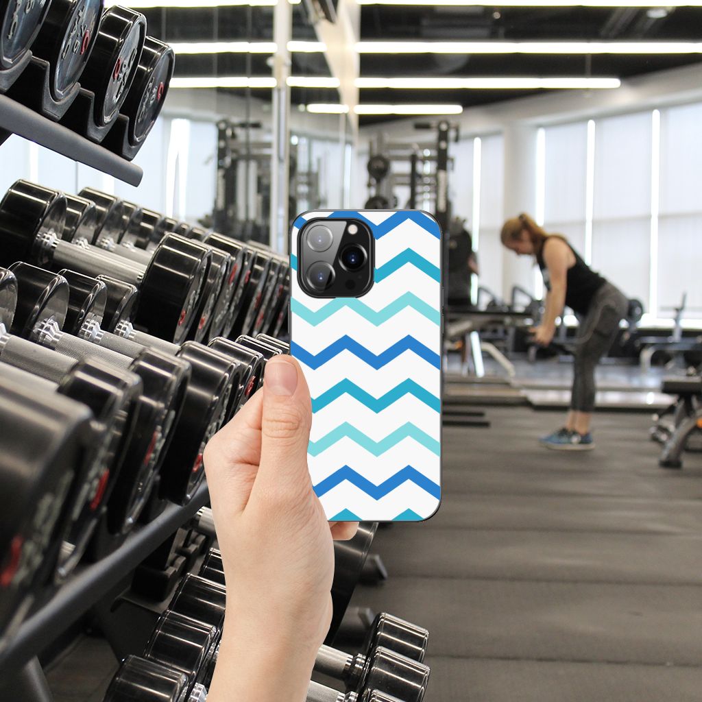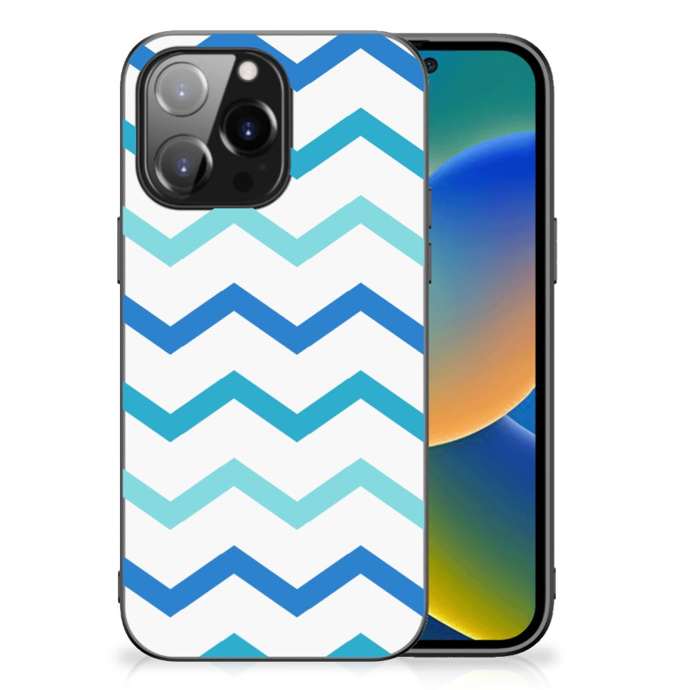 iPhone 14 Pro Max Back Case Zigzag Blauw