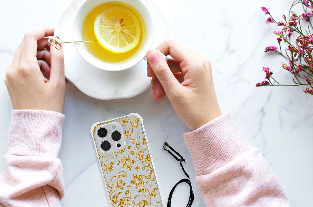 iPhone 14 Pro Max Case Gouden Bloemen