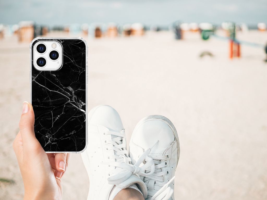 Apple iPhone 14 Pro Max Anti-Shock Hoesje Marmer Zwart - Origineel Cadeau Vader