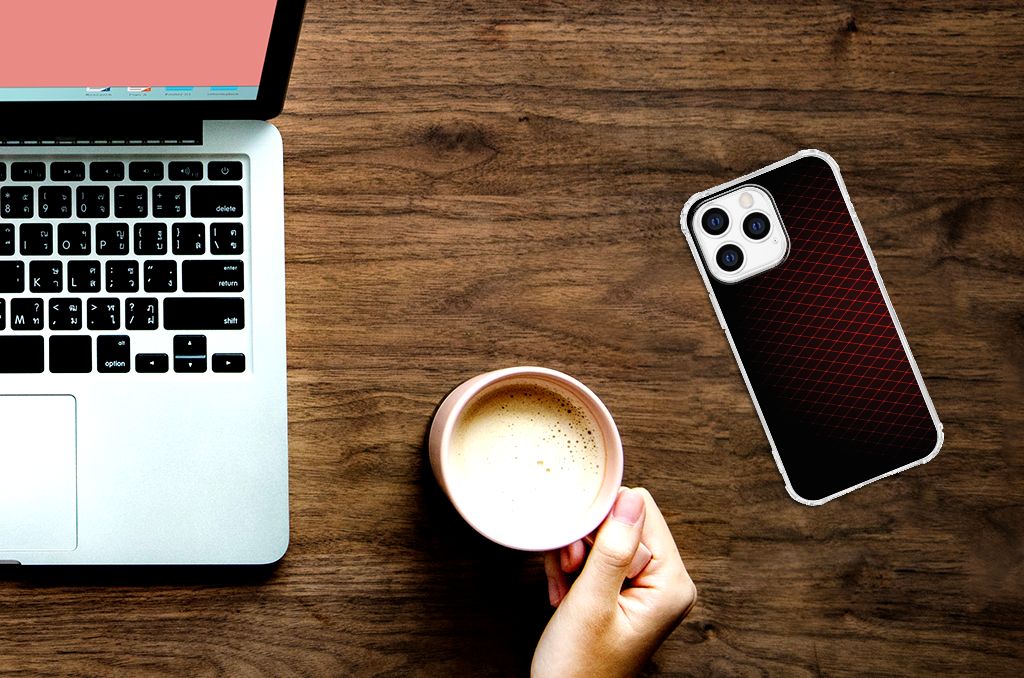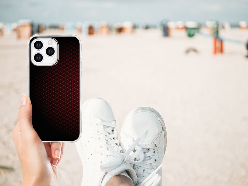 Apple iPhone 14 Pro Max Doorzichtige Silicone Hoesje Geruit Rood