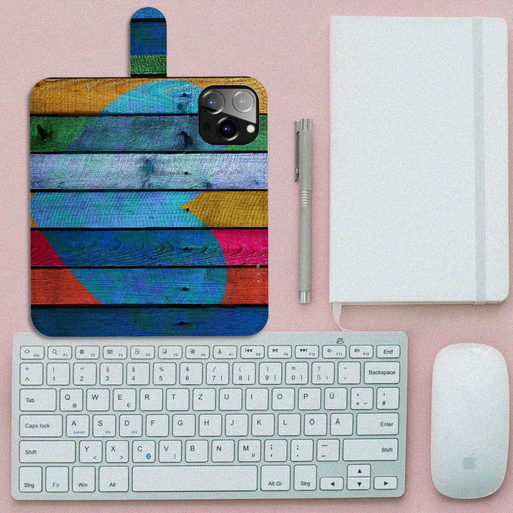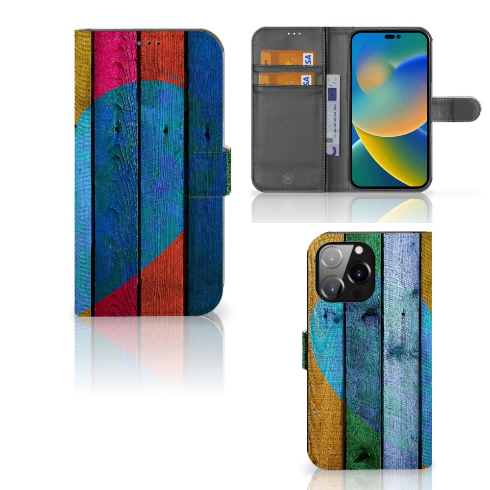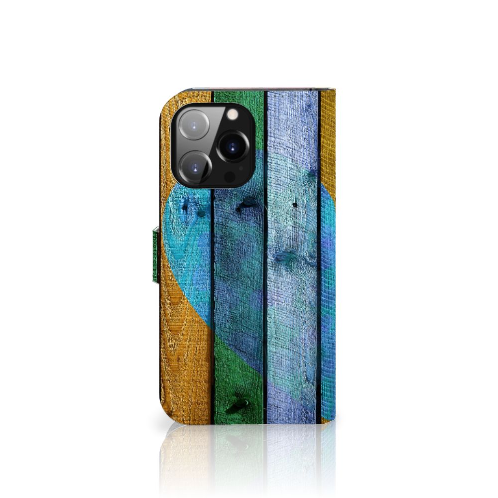 iPhone 14 Pro Max Book Style Case Wood Heart - Cadeau voor je Vriend