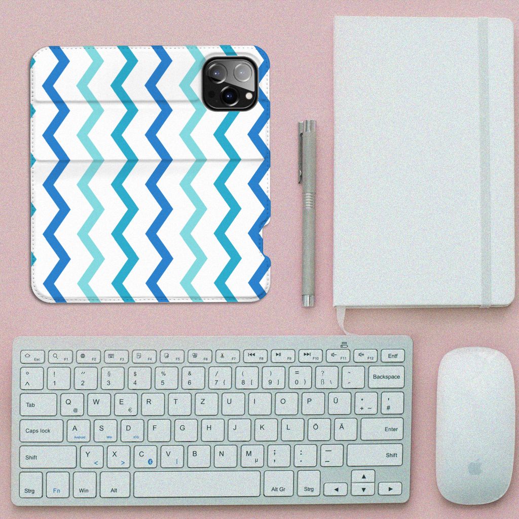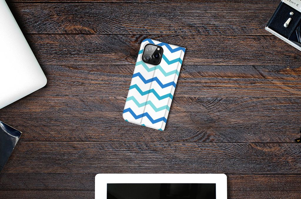 iPhone 14 Pro Max Hoesje met Magneet Zigzag Blauw