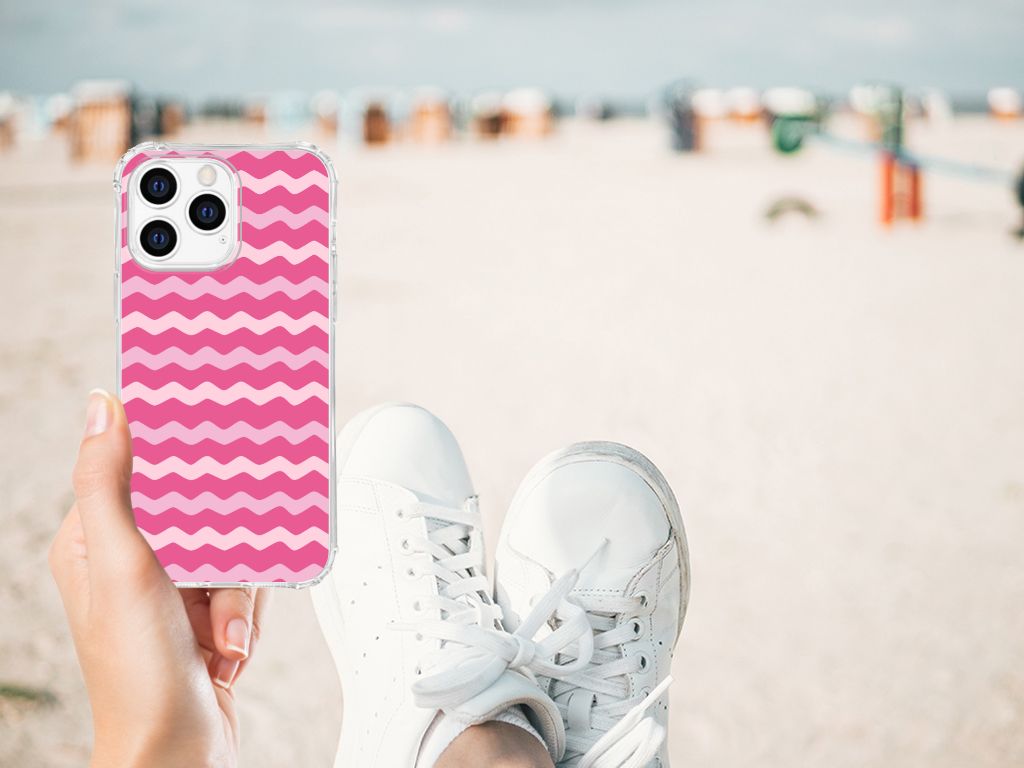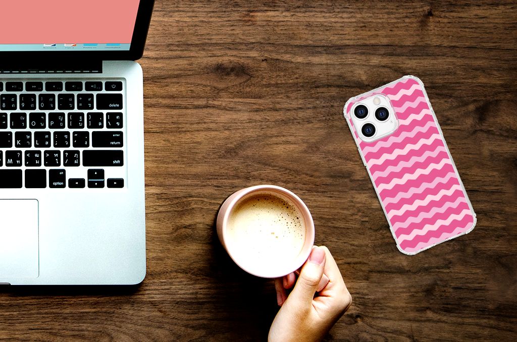 Apple iPhone 14 Pro Max Doorzichtige Silicone Hoesje Waves Pink