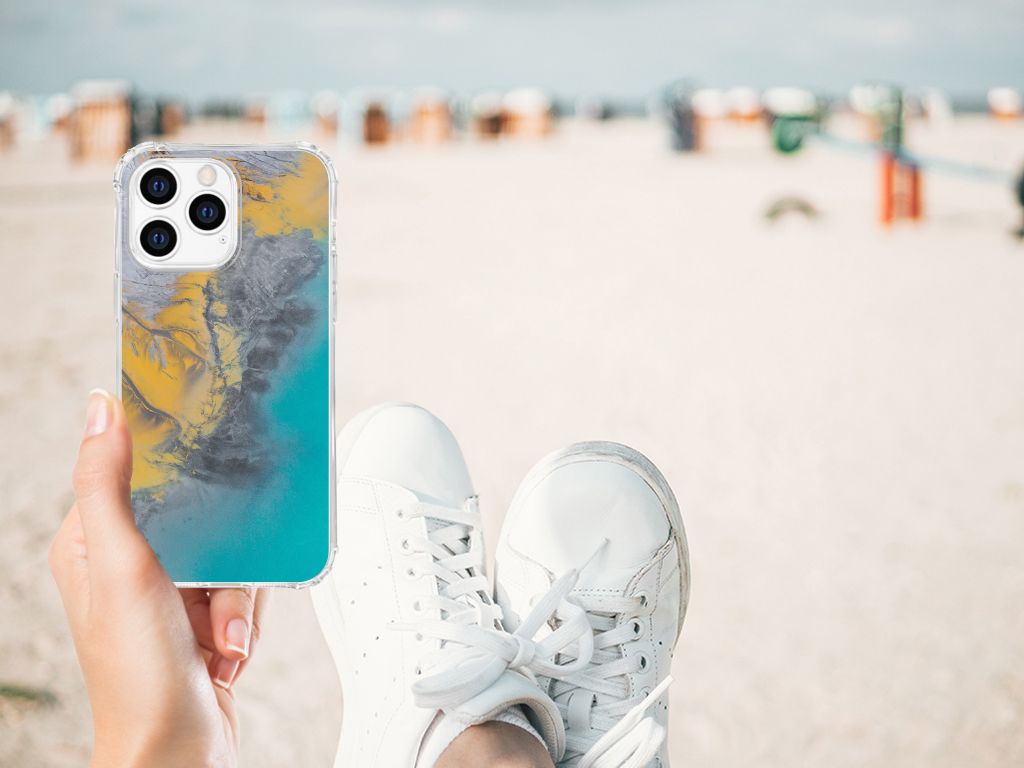 Apple iPhone 14 Pro Max Anti-Shock Hoesje Marble Blue Gold
